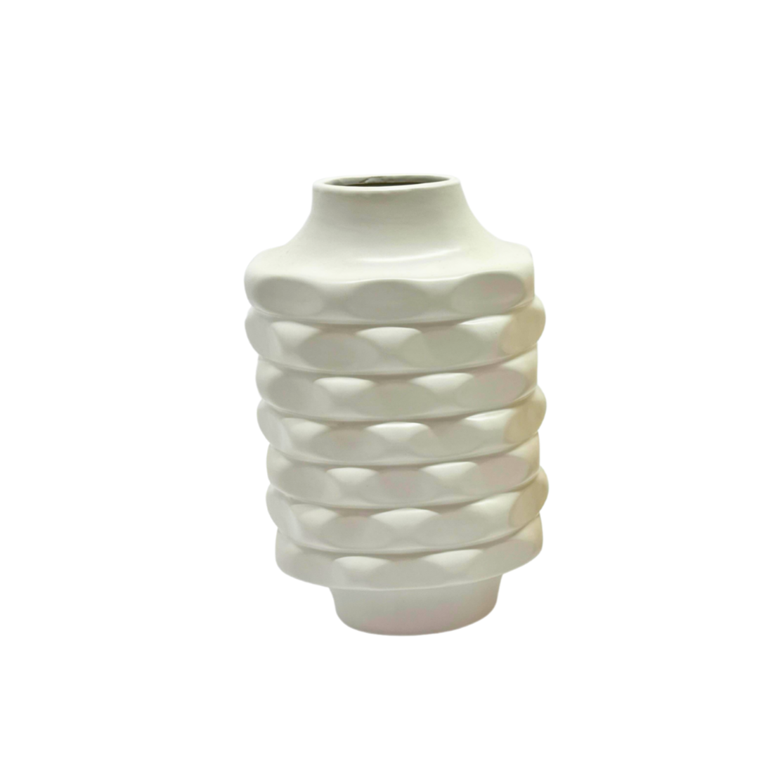 Jarrón con relieve y acabado que aporta brillo y textura. Perfecto como pieza protagonista o para arreglos florales secos