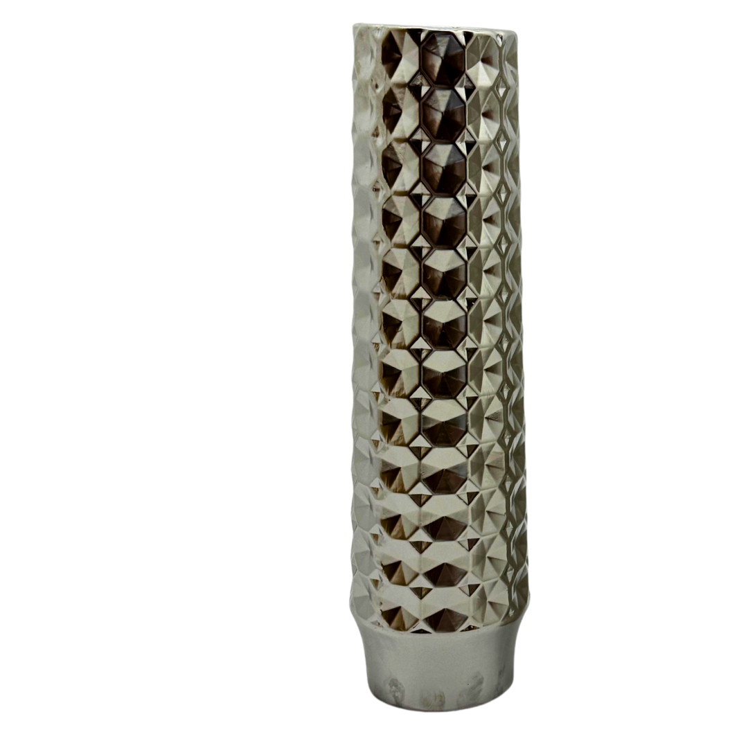 Jarrón cilíndrico su perfil estilizado aporta altura y brillo en consolas, mesas o recibidores