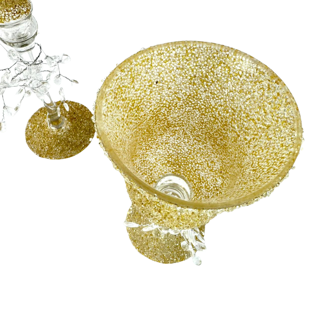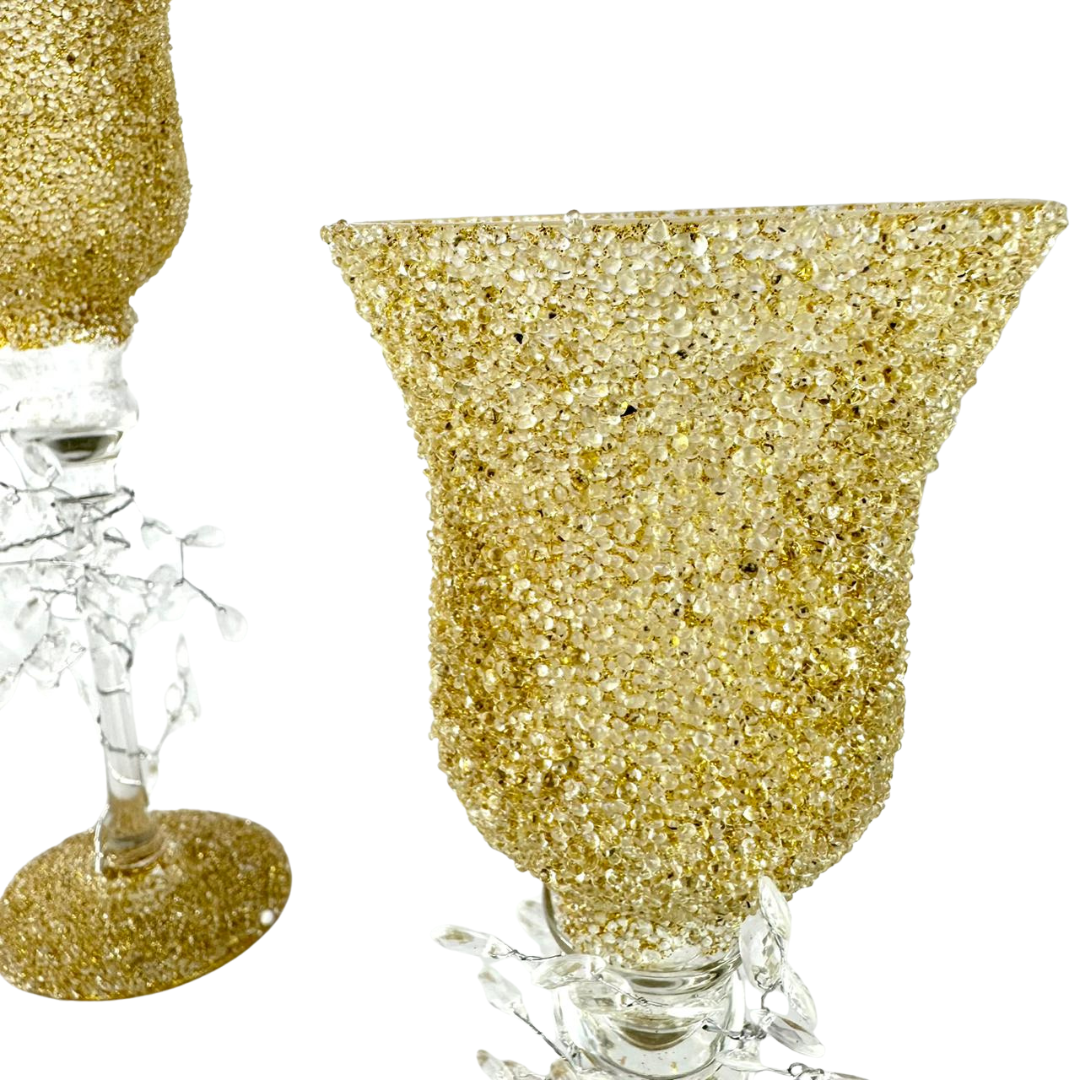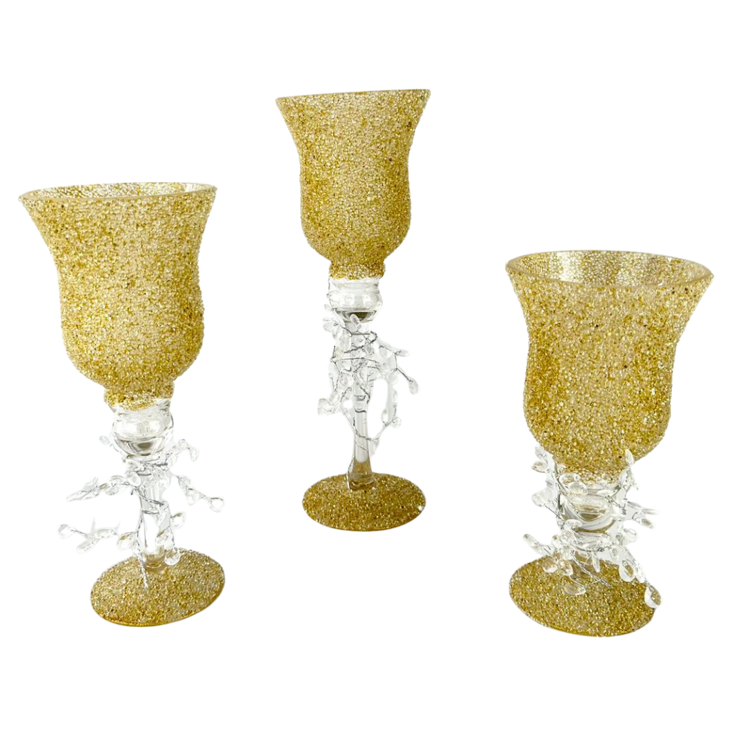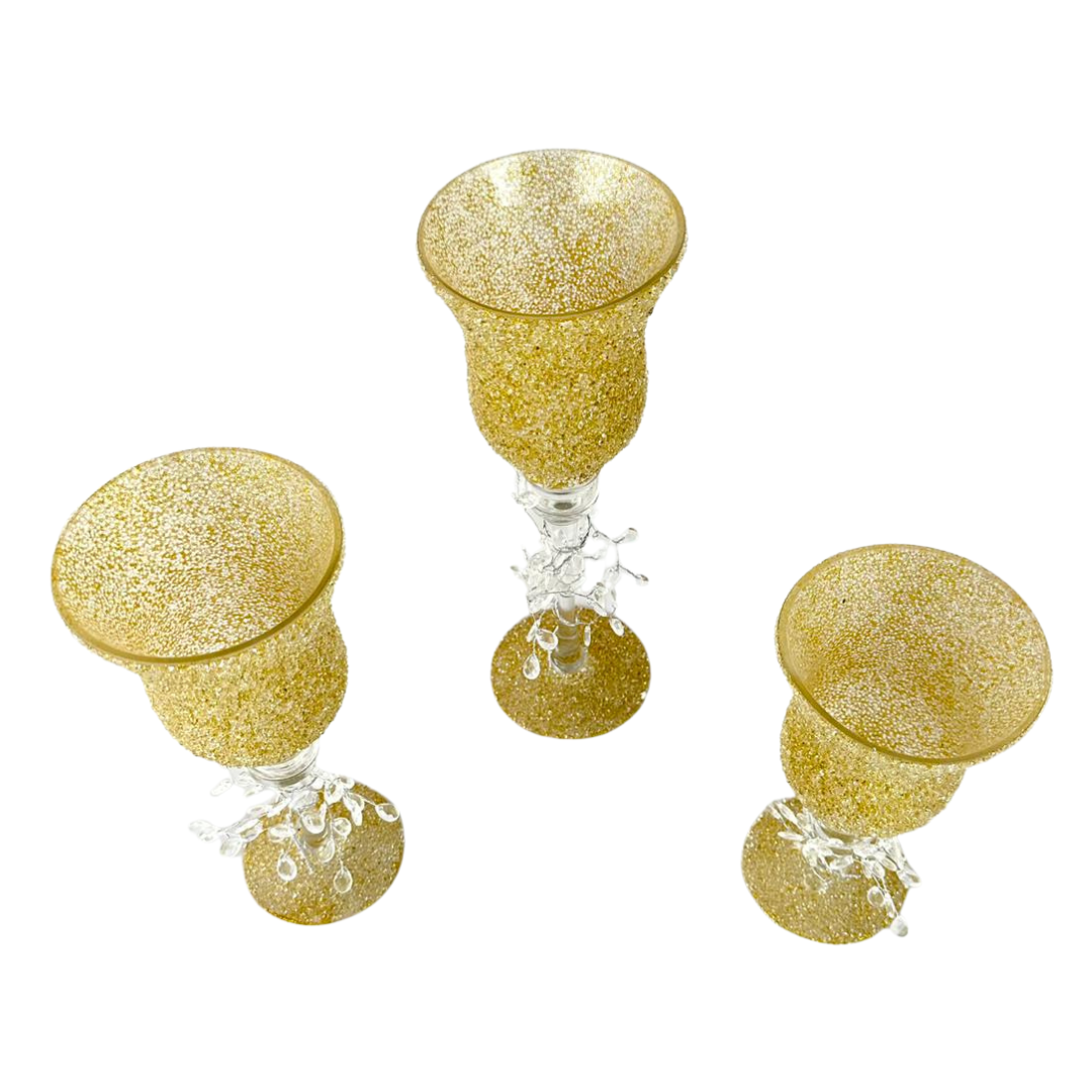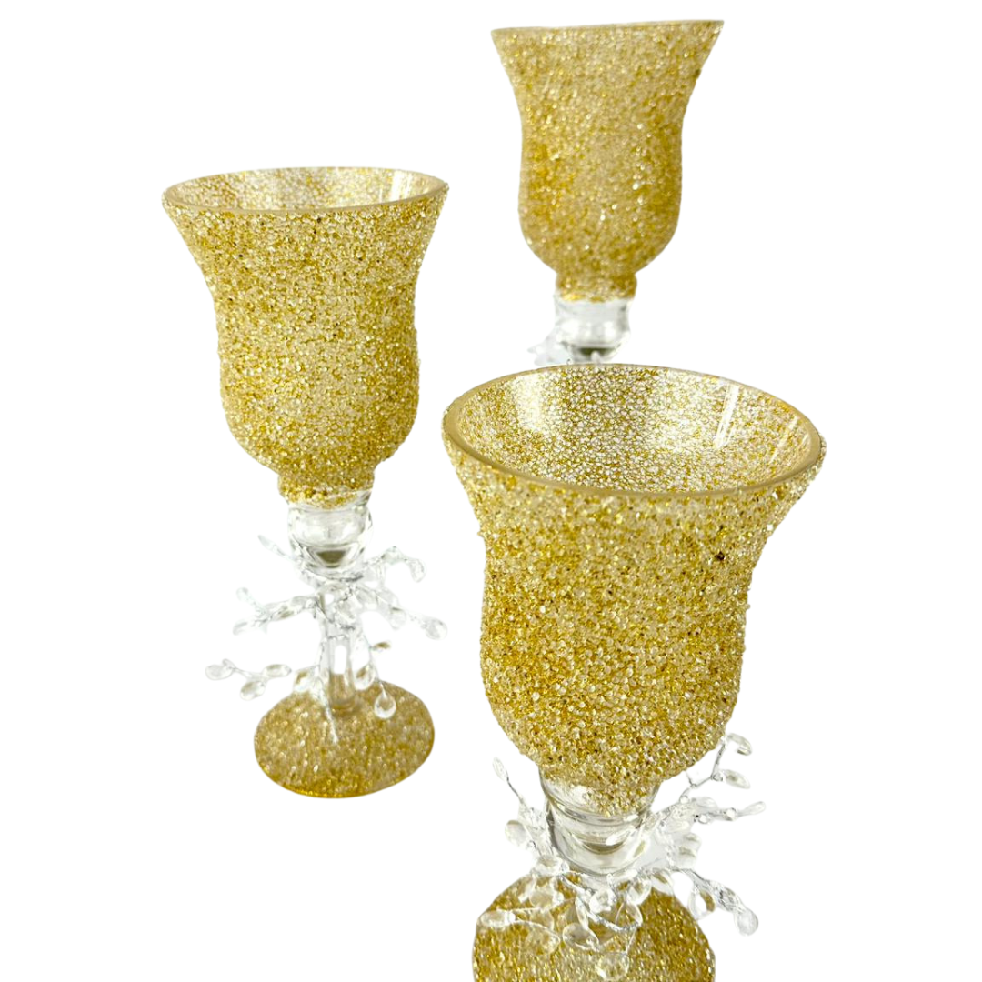 Set de 3 copas con bowl texturizado tipo diamantado y tallo transparente. Ideales como centro de mesa, para dar un toque elegante en sala y comedor.