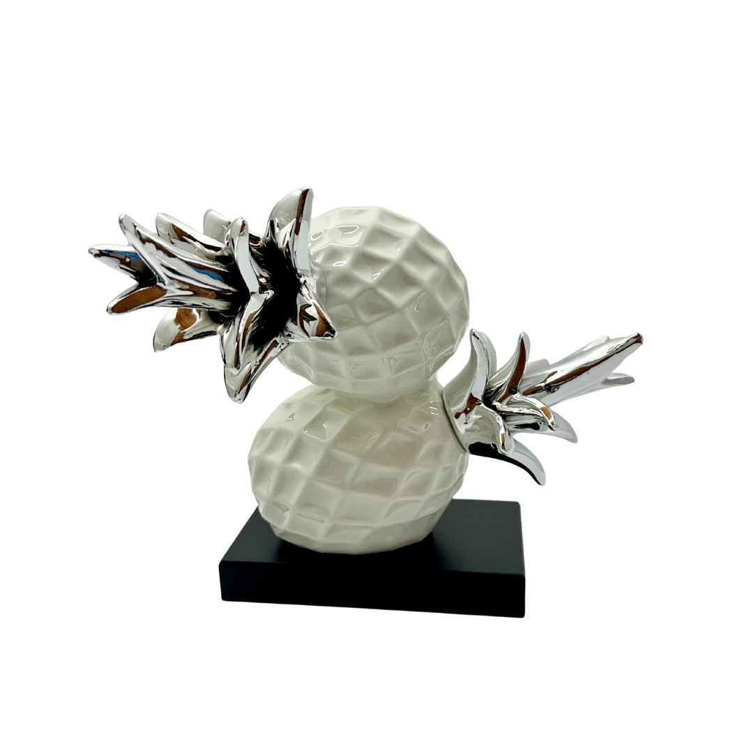Dale un toque moderno y fresco a tus espacios con esta elegante piña decorativa en tonos blanco y plateado. Su diseño y acabado la convierte en una pieza llamativa y versátil, perfecta para complementar cualquier estilo de decoración: minimalista, nórdico, glam o contemporáneo.